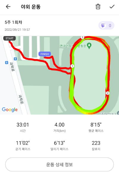 간만에 선선한 가을 저녁, 다시 런데이로 달리기 도전!